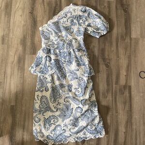 FARM Rio One-Shoulder Eyelet Midi Dress Size Small