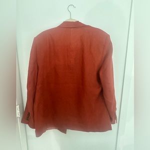 Vibrant orange blazer. Bold and stylish. Perfect for any occasion.