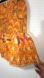 Bright orange mini skirt with blue accents. Features a playful ruffle hem. Ideal for a fun day out. Waist 26-26 alot of stretch. Lenght 20