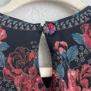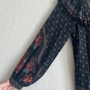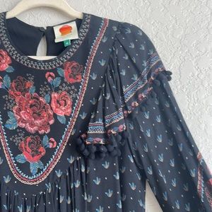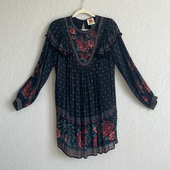 Chic mini dress with floral pattern. Long sleeves with ruffle details. Perfect for any occasion.