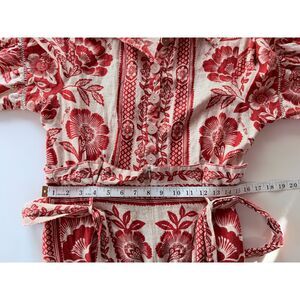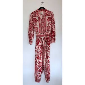 FARM Rio Pineapple Garden Floral-Print Linen-Blend Jumpsuit in Red & White Sz M