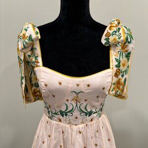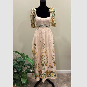 FARM Rio Pink Botanical Beauty Shoulder Bow Midi Dress NWT