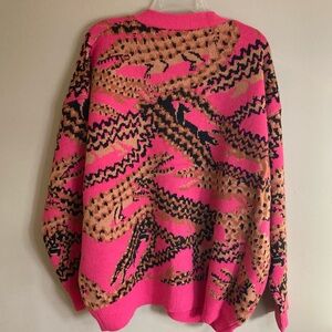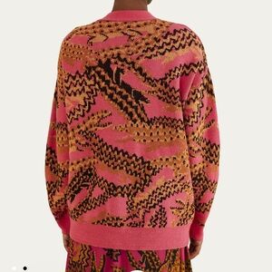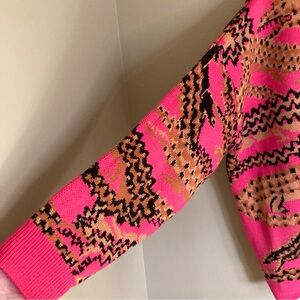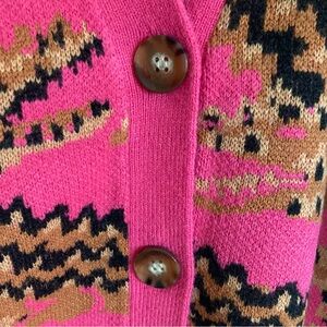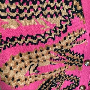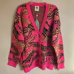 FARM Rio Croco Pink Knit Cardigan Sweater Oversized Abstract Crocodile