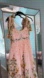 Charming pink midi dress with floral print. Features bow-tie straps. Perfect for a summer outing.