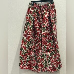 Embrace elegance with this stunning floral print maxi skirt. Perfect for any occasion, this skirt features vibrant red and green hues that add a touch of nature to your wardrobe.