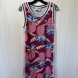 FARM Rio Pink Pineapple and Black Polka Dot Midi Dress, Sz S