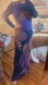 Stylish purple and orange long sleeve maxi dress with unique patterns.