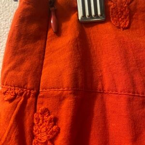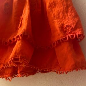 Vibrant red mini skirt. Features tiered ruffles. Perfect for a bold look for summer or tropical getaway!