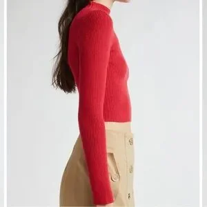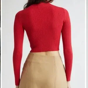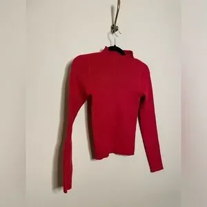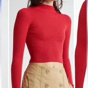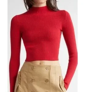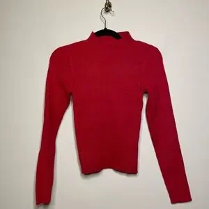 Soft ribbed knit. Fitted silhouette with a mock neck. Long sleeves and a cropped hem. Bright red tone for bold looks. In very good used condition. No flaws.