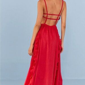 FARM Rio Red Ruched Cut Out Sundress