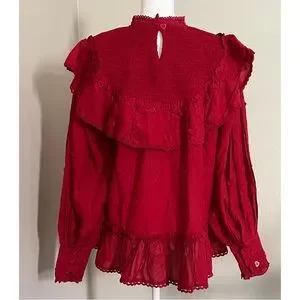 NWOT Elegant red blouse with ruffled details. Crew neck design. Perfect for stylish layering.