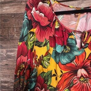 FARM Rio Red and Yellow Ruffled Floral Blouse