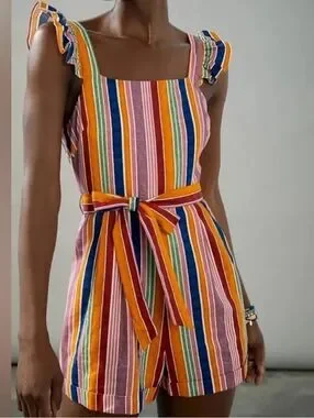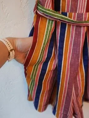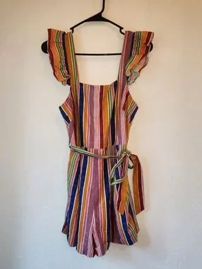 Ruffled straps, waist tie, zipper back, pockets, cuffed hem, fully lined!