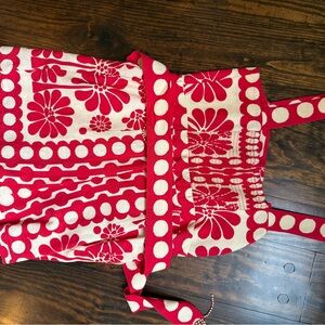 Stylish red and white floral romper with button details. Perfect for a casual day out. Worn twice. Decided to size up. Fresh dry cleaned. Would work for someone up to 5’5 - I sized up due to the inseam. This is very much priced to sell. It was worn twice. Will not entertain offers 50% of asking price.