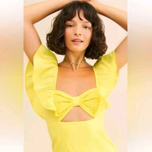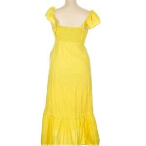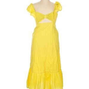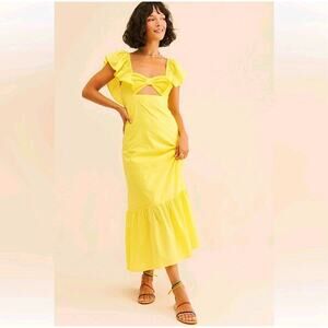 FARM Rio Ruffled Sweetheart Maxi Dress XL Petite Sundress Yellow Midriff Cutout