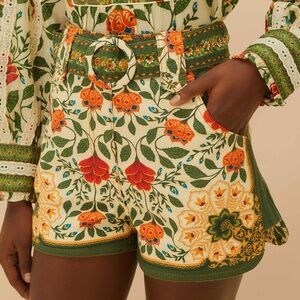 Embrace the vibrant charm of FARM Rio with our Sand Garden Tapestry Shorts. Crafted from responsible materials, these shorts boast intricate embroidery and a lush floral tapestry in rich greens and warm oranges. The high-waisted cut enhances the silhouette, while the playful patterns evoke the beauty of a flourishing garden. Perfect for adding a touch of tropical elegance to your wardrobe, these shorts celebrate craftsmanship and creativity.