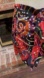Vibrant high waisted shorts with a colorful, abstract pattern. Features a tie-front cloth (and beaded) belt.