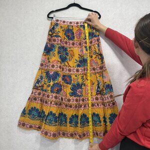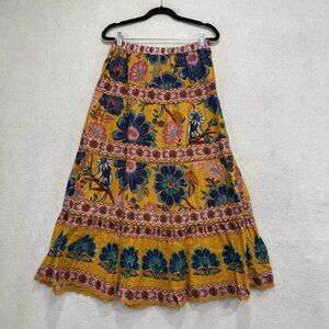 FARM Rio Skirt Womens XS Yellow Floral Boho Tiered Maxi Elastic Waist 333856