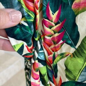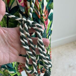 FARM Rio tropical print short tunic- cotton knit fabric shoulder pads, rope belt waist band NWT great beach cover up