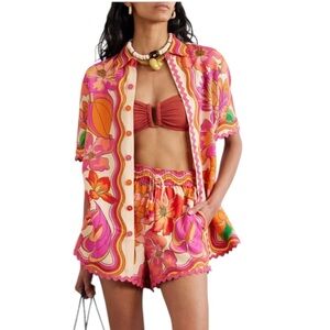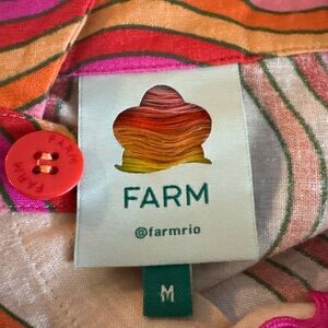 FARM Rio Spring Affair Floral Linen Button Top Ric Rac Applique M Oversize EUC