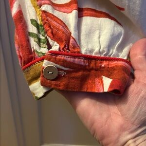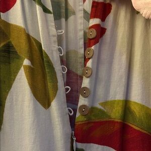 Brighten your wardrobe with this colorful tropical jumpsuit from FARM Rio. It Features bold leaf patterns in green, red, and cream. Ideal for casual wear.