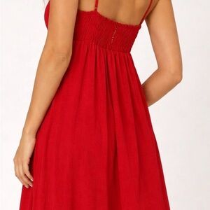 Chic strapless design. Bold red color. Perfect for any event.
