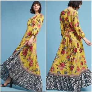 FARM Rio Sunlit Floral Maxi Wrap Dress in Yellow / Multicolor, Women’s Size XXS