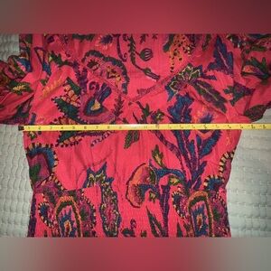 FARM Rio Sunset Tapestry Blush Mini in Red Smocked Cotton Dress size Large EUC