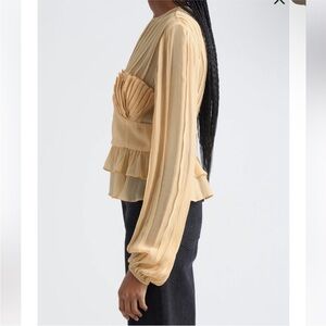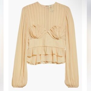 FARM Rio Tan Cream Pleated Peplum Blouse
