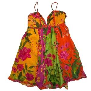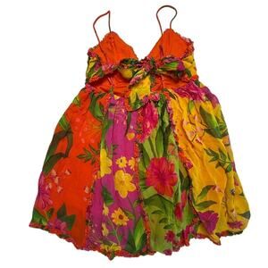 FARM Rio Tropical Patchwork Floral Ruffle Mini Dress Multicolor Boho Size Small