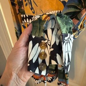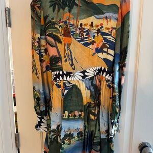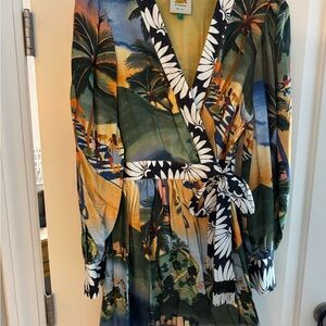 Like new! Embrace vibrant style with this tropical mini dress. Features lush patterns and bold colors. Ideal for sunny adventures.
