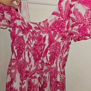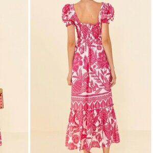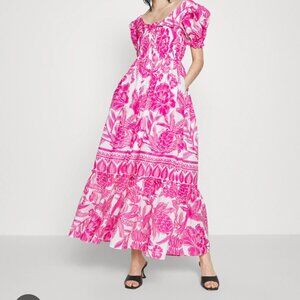 FARM Rio Tropical Woodcut Pink Maxi Dress L