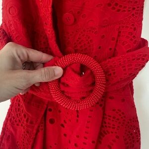 Bright red romper with intricate eyelet details. It is so cute and fun! Brand new with tags !