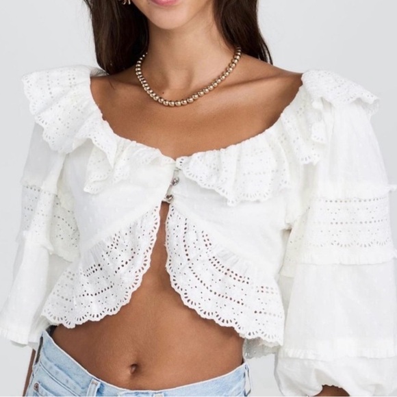 FARM Rio White Eyelet Ruffle Blouse size small