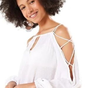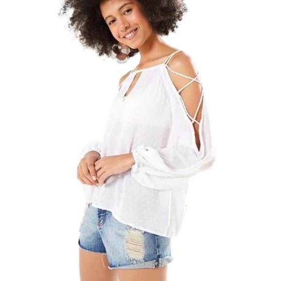 Super cute, this white top has cut out in the sleeves.