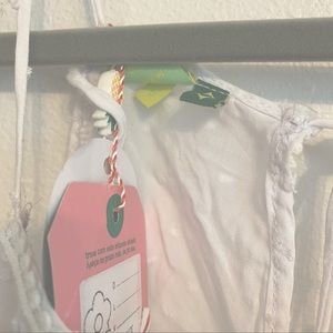 Tying details on the back with pompons and beads.