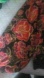 Chic floral cardigan with bold black, red, and purple design. Perfect for stylish layering.