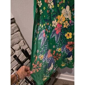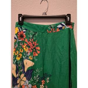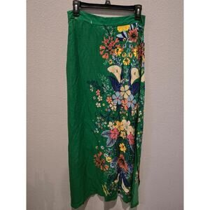 FARM Rio Women's Floral Green Maxi Skirt with Slit M Boho Resort