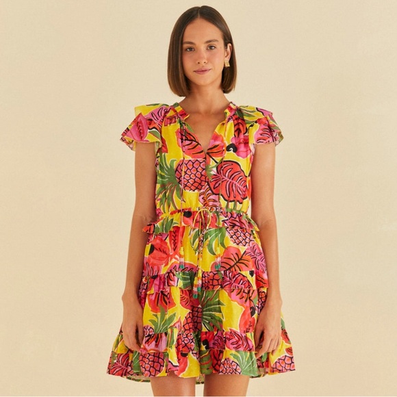 FARM Rio Yellow Fruit Dream Ruffle Mini Dress