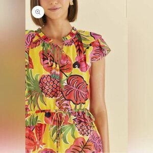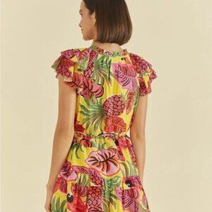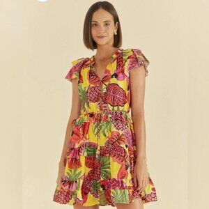 FARM Rio Yellow Fruit Dream Ruffle Mini Dress Sz M