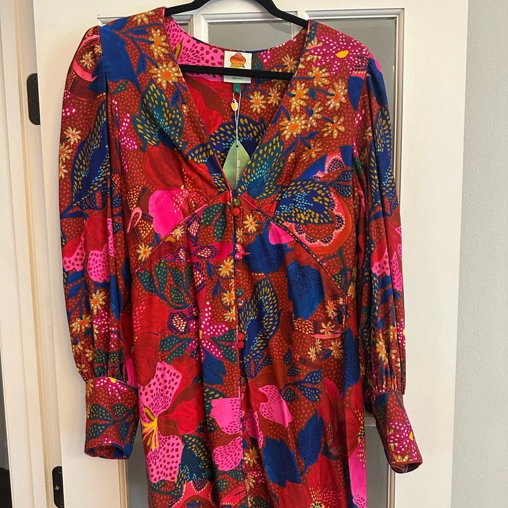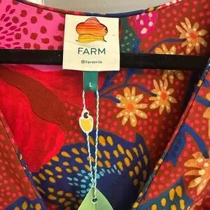 FARM Rio dress size large never worn! Bright and fun with dark reds and pinks