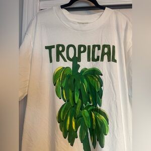 Brand New without tags no flaws Fabric: Lightweight jersey. Tropical banana graphic. Side slit. Crew neck. Short sleeves. Pullover design, no closure. Shell: 100% cotton. Unlined. Wash cold. Imported