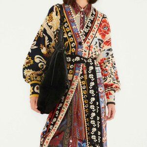 FARM Rio mixed flower print patchwork knit midi cardigan NWOT