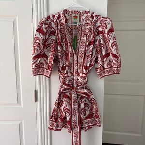 Super cute deep red cotton romper with waist tie. New with tags!!