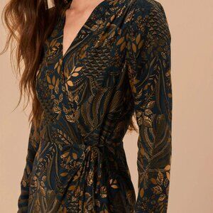 FARM Rio teal dotted forest lenzing™ ecovero™ viscose wrap mini dress (M) nwt