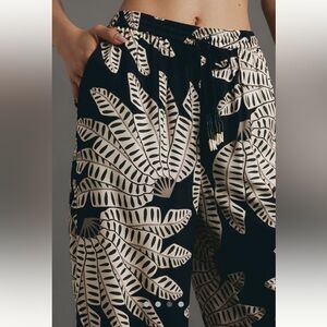 FARM Rio x Anthropologie Black and Cream Palm Pull-On Wide-Leg Pants, NWT, L