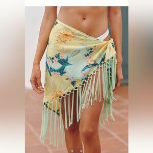 FARM Rio x Anthropologie Yellow Floral Sarong with Green Fringe