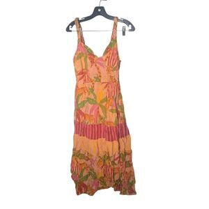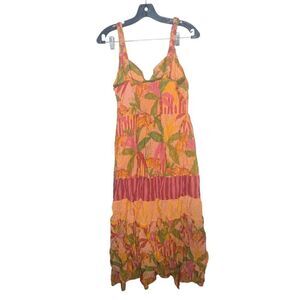 FARM RIO x Anthropologie Glam Tropical Pink Peach Orange Maxi Dress M Medium