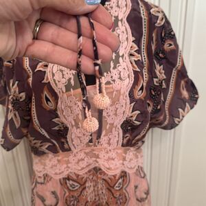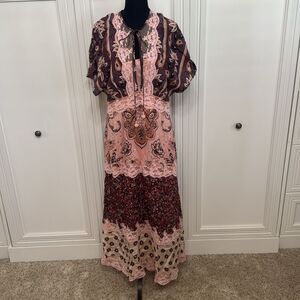 FARM Rio Glam Tapestry Burgundy Lace Short Sleeve Maxi Dress Size Large