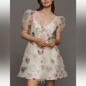 FARM Rio x Anthropologie Semi- Sheer Puff Sleeve Dress